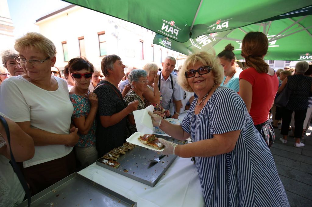 ‘Doživite najveću međimursku pogaču’ sastavnica je čakovečkog Porcijnkulovog. Ove godine je na Franjevačkom trgu na dugačkom stolu namjernicima servirano 2000 komada pogače koju je ispekla Slađana Herman, jedna od najpoznatijih hrvatskih kuharica.