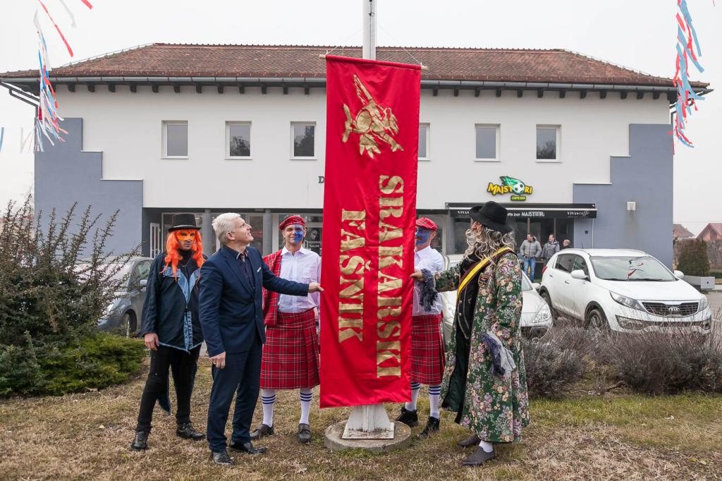 Na jarbol ispred Doma kulture podignuta je zastava Srakarskog fašnika, a predsjednik Udruge maškara ‘Črna sraka’ Slobodan Drožđek preuzeo je ključ Općine Sračinec od načelnika Božidara Novoselca.