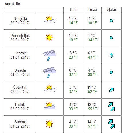 Sredinom tjedna tempratura će narasti do nule, a moguća je i kiša. Do kraja tjedna temperature narasti i do 14 stupnjeva, a puhat će umjeren do jak jugozapadni vjetar.