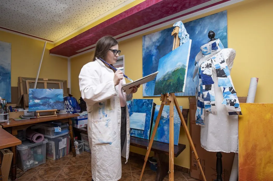 U utorak, 14. listopada 2025. u 19 sati u Galeriji HDLU Varaždin, u Kuli stražarnici Starog grada Varaždina, bit će otvorena samostalna izložba “Razgovori s plavom” akademske umjetnice Jasmine Jakopanec.