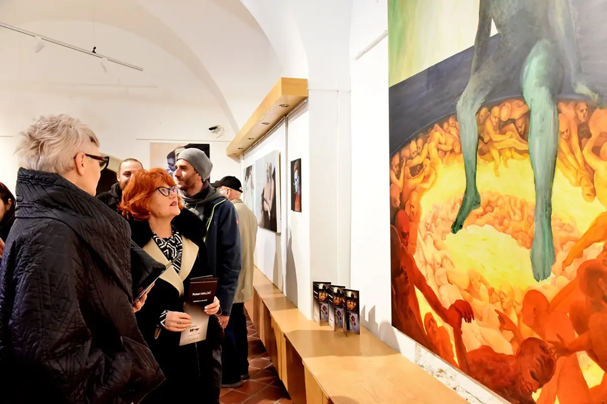 Izložba slika Roberta Maloića "Mirrors in the Dark" otvorena je sinoć u Galeriji HDLU-a Varaždin.