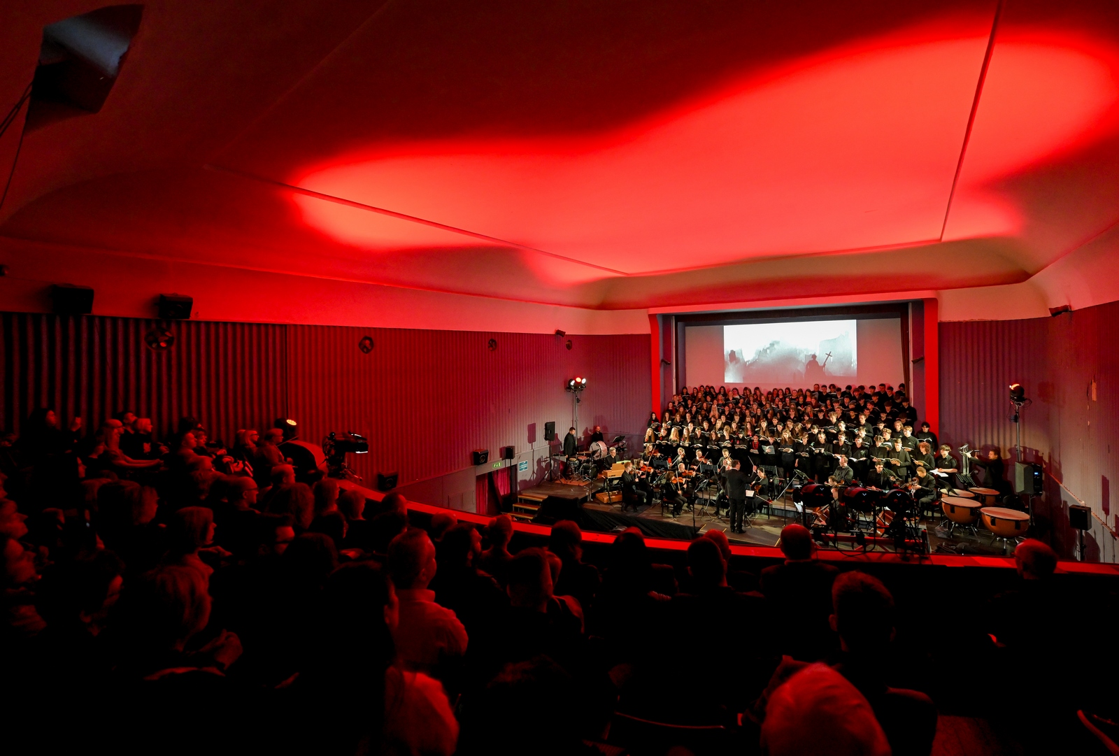 Na pozornici je nastupilo čak 140 članova združenog zbora učenika Glazbene škole u Varaždinu i švicarske Kantonsschule Schaffhausen, uz Varaždinski komorni orkestar, stvarajući monumentalnu zvučnu sliku kakvu zahtijeva ovo jedno od najizvođenijih suvremenih zborsko-orkestralnih djela u svijetu. Izvedbom su ravnali dirigentica Dada Ruža i dirigent Ulrich Waldvogel Herzig, koji su s mladim glazbenicima mjesecima pripremali ovu zahtjevnu partituru.