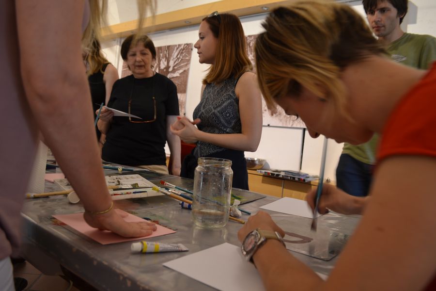 – Polaznici prvo rade monotipiju, koja bude naslovna stranica blokića, knjižice ili albuma, a korice dobivamo od ljepenke. Drugi dan će na korice lijepiti svoje monotipije, a na kraju se arci šivaju unutar knjižice.