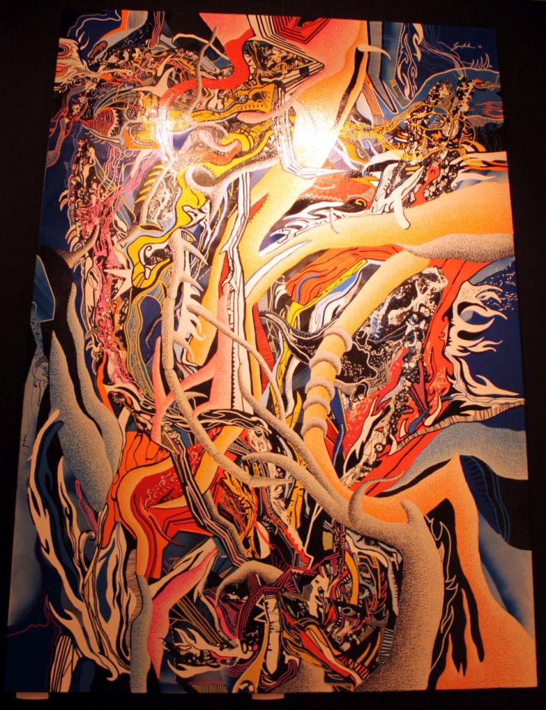– Svi radovi nastaju na podu, tako da je tu i dimenzija performansa. Rekao mi je jedan prijatelj da se ti radovi mogu mjeriti u kilodžulima zato što su to ujedno kombinacije flomastera na bazi ulja, spreja, emajla na bazi vode i fasadne boje. Svi ovi radovi su spoj geometrijske apstrakcije, nadrealizma, pop-arta i street-arta.