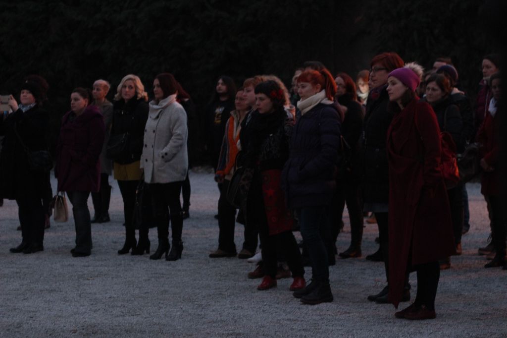 Kazališna predstava čija je izvedba privukla stotinjak gledatelja, prati problematiku ravnopravnosti spolova, odnosno povlašteni položaj muškaraca u društvu, dok se žene pokušavaju izboriti za svoje mjesto u društvu koje ih okružuje. Predstava je započela okupljanjem ispred Gradske vijećnice, a kretala se kroz Gundulićevu i Ulicu Jurja Habdelića. Svoju kulminaciju je doživjela kod palače Zakmardy, gdje se odvio sukob muškaraca i žena.