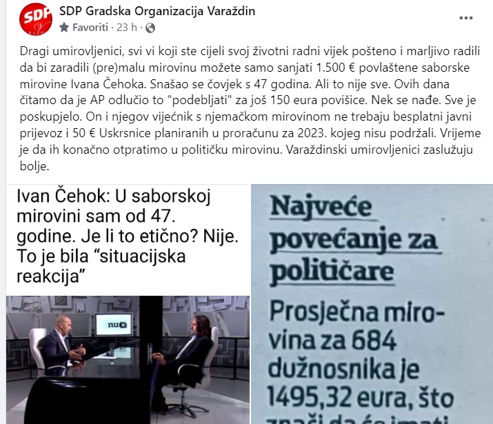 možete samo sanjati 1.500 eura povlaštene saborske mirovine Ivana