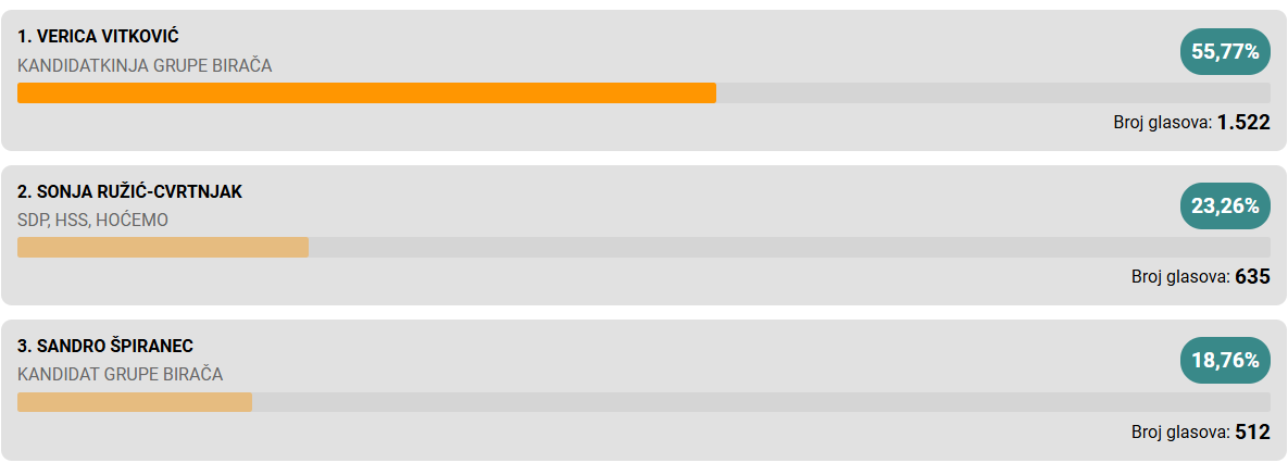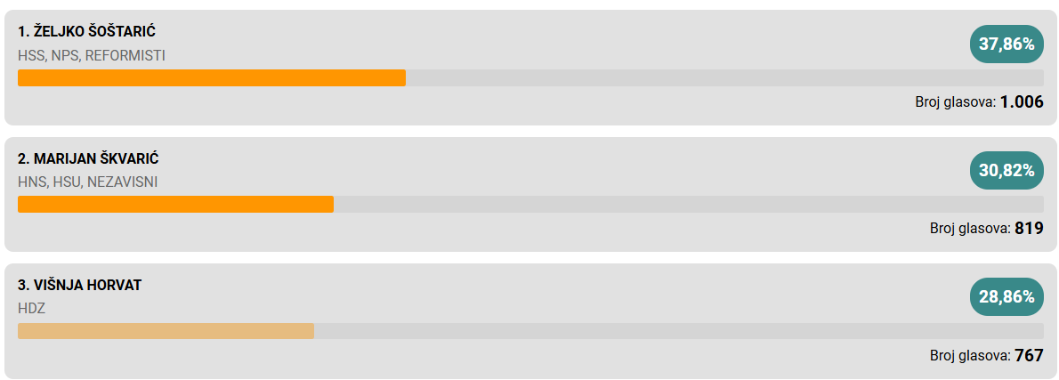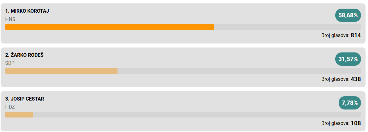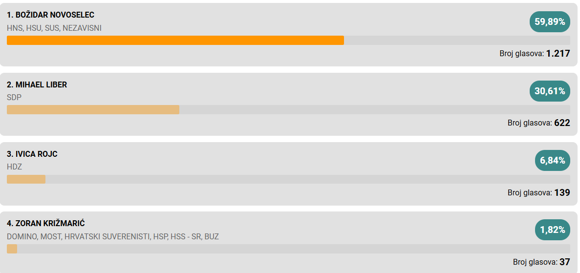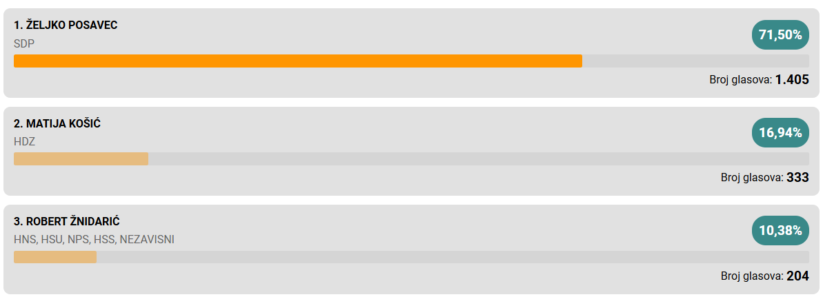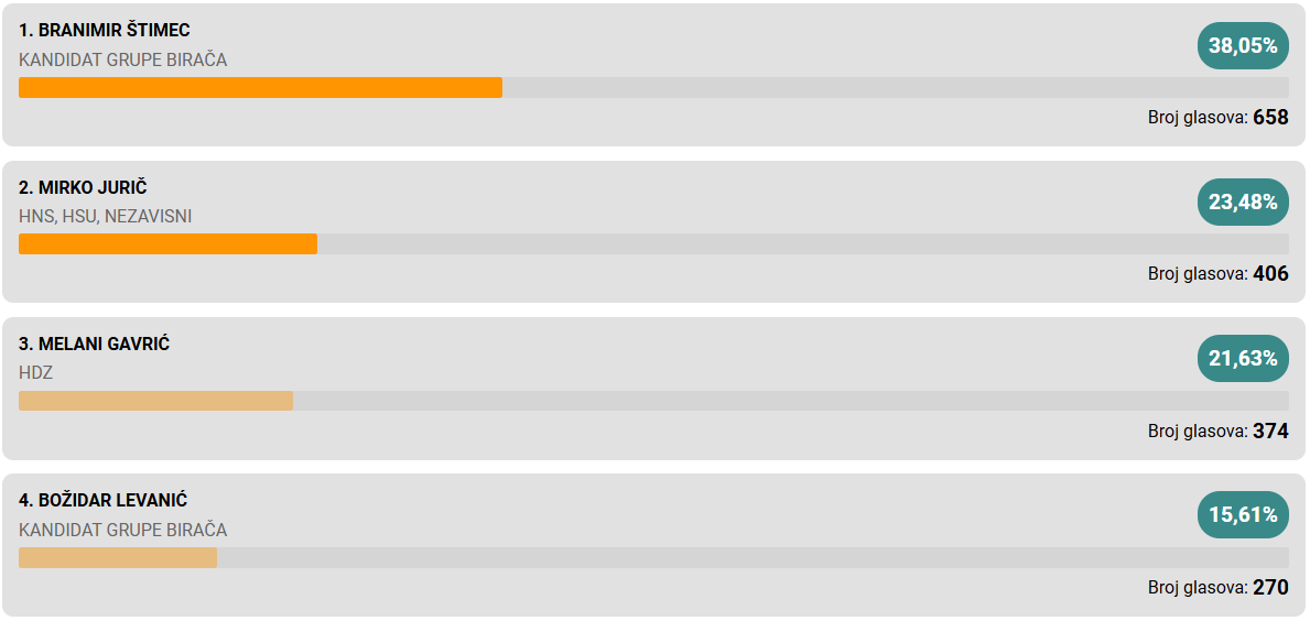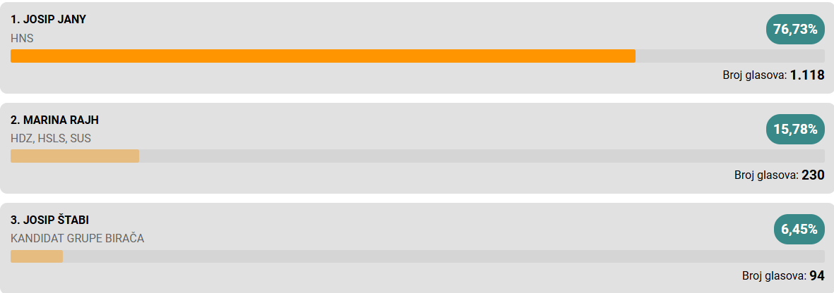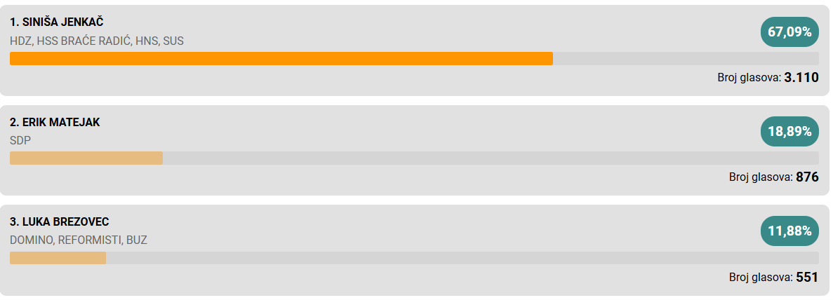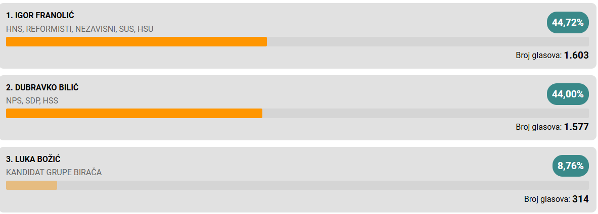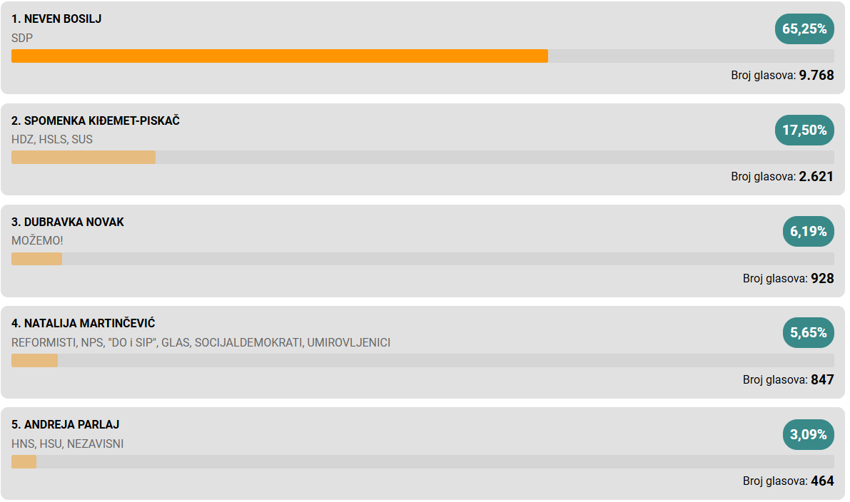 Pobjedu u prvom krugu odnosi Neven Bosilj i osvaja još jedan mandat.