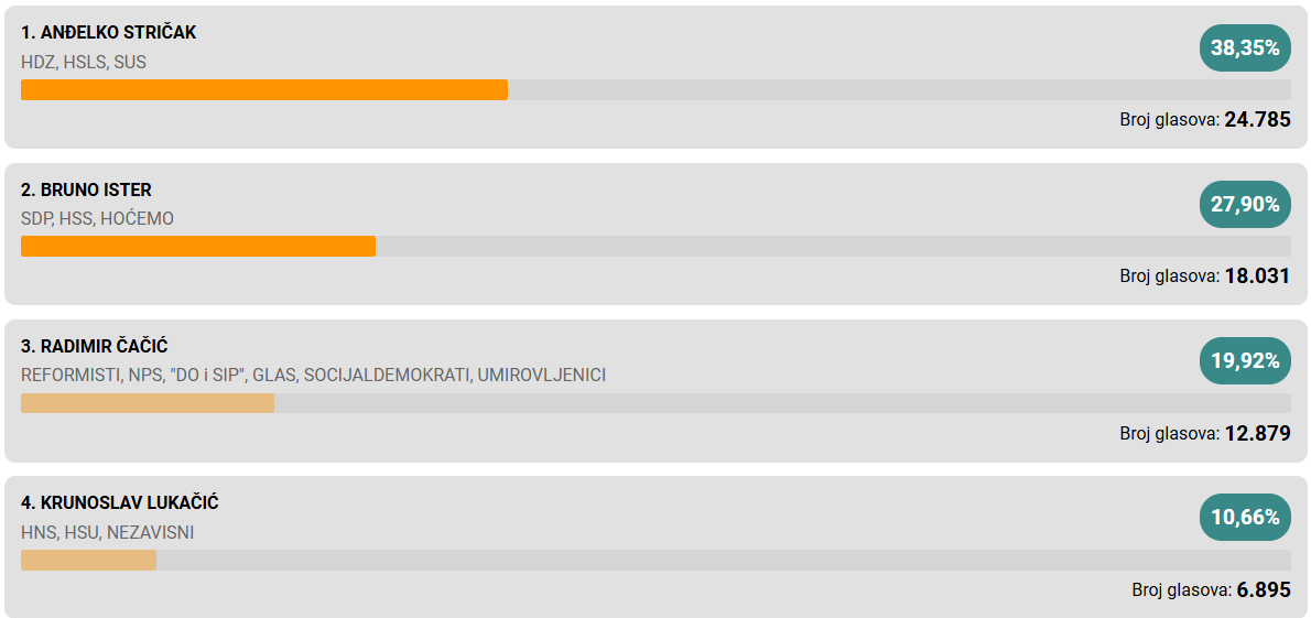 Aktualni župan Anđelko Stričak ide u drugi krug s Brunom Isterom.