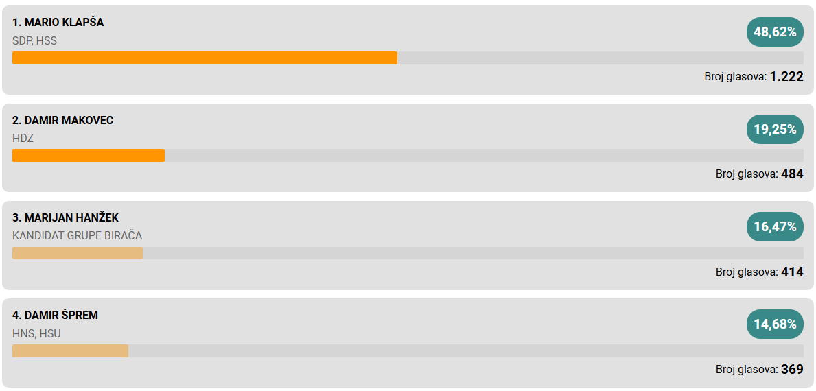 Aktualni načelnik Mario Klapša i Damir Makovec idu u drugi krug.