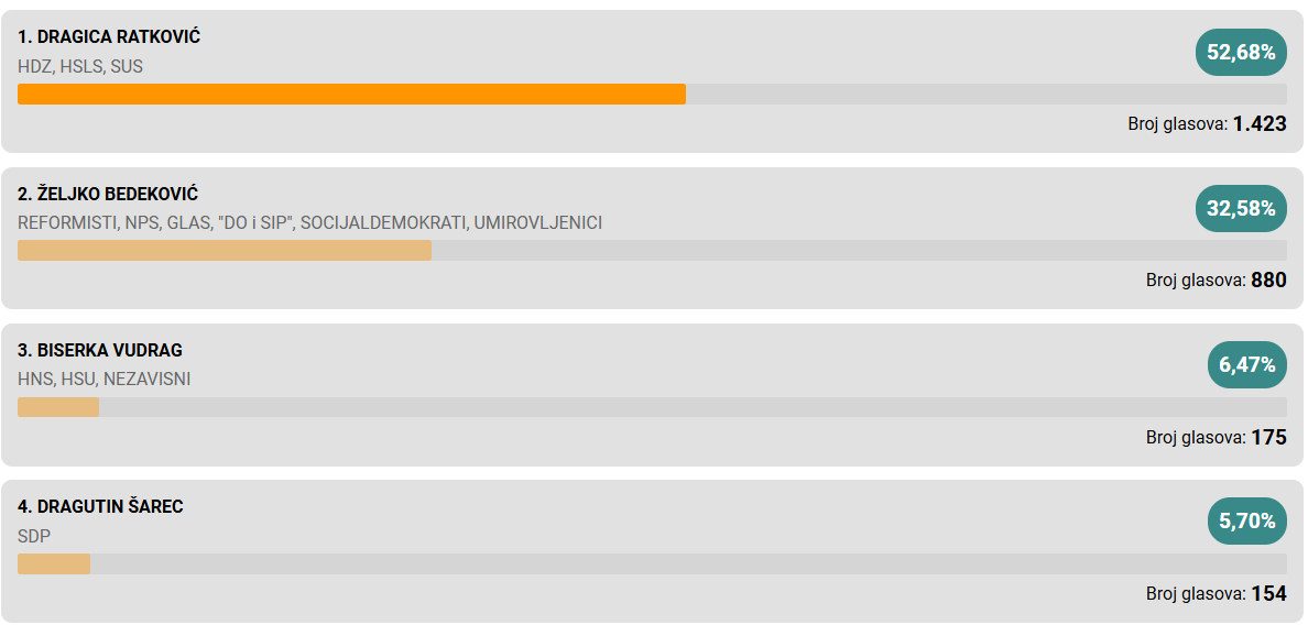 Dragica Ratković u prvome krugu osigurala je pobjedu i još jedan mandat.