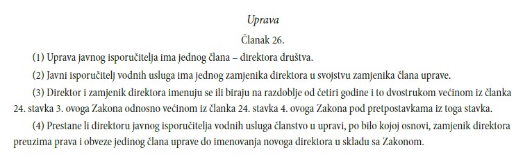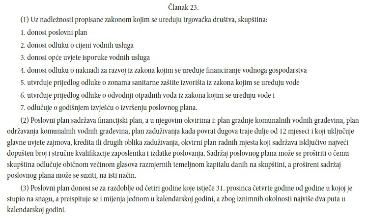 Skupština. On spominje i Zakon o vodnim uslugama, no neka pogleda