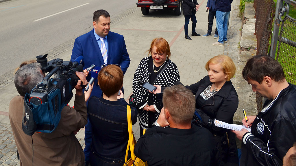Pred Prvu gimnaziju Varaždin, gdje je održana konferencija za novinare, Mrak-Taritaš i Kišić dovezli su se gradskim busekom.