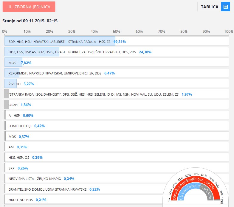 Stanje nakon obrađenih 98,2% biračkih mjesta u III. izbornoj jedinici izgleda ovako:
