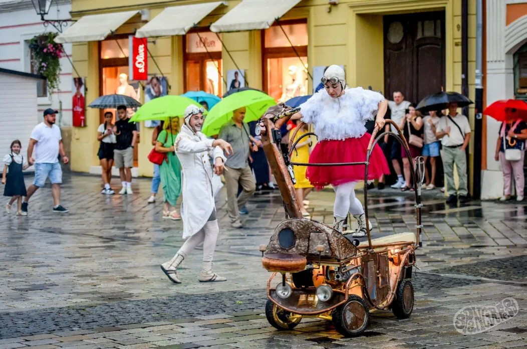 Na kišne ulice hrabro su zakoračili Cie Bruboc sa svojim neobičnim vozilom i špancirere poveli u svijet ispunjen plesom, smijehom i čarolijom. Bez ijedne riječi, ali s obiljem emocija, podijelili su s publikom univerzalnu poruku o radosti, ludosti i ljepoti trenutka, čak i pod kapljicama kiše. Danas su na ulicama ponovno od 11:00 i 20:00 sati.