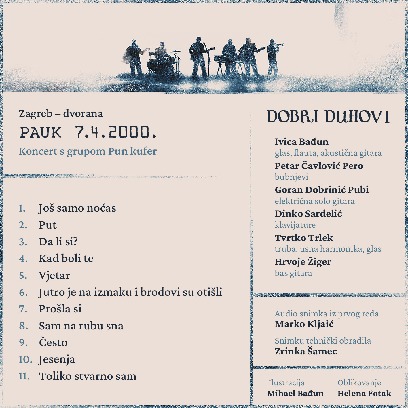Varaždinski rock veterani, Dobri duhovi, odlučili su počastiti svoju vjernu publiku, ali i mlađe generacije, novim glazbenim izdanjem. Točno na dan 7. travnja, 26 godina nakon svirke u zagrebačkom klubu Pauk, bend je objavio arhivsku snimku tog povijesnog nastupa.