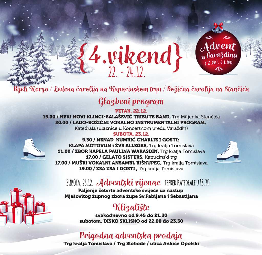Polako odbrojavamo sate do Božića, a blagdansko će raspoloženje zasigurno dodatno podići bogati glazbeni program koji nas očekuje tijekom četvrtog adventskog vikenda.