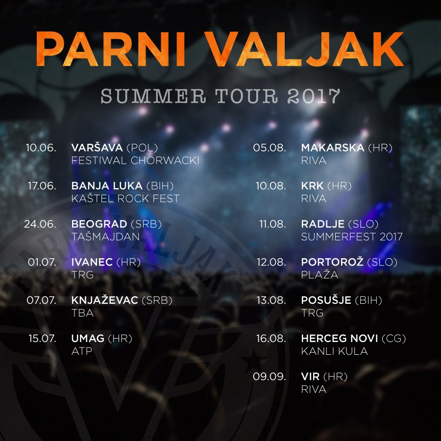 Poznati hrvatski bend Parni valjak na svojoj je službenoj Facebook stranici objavio rspored nastupa u sklopu ovogodišnje ljetne turneje.