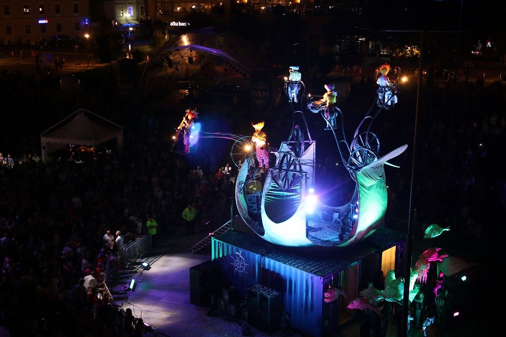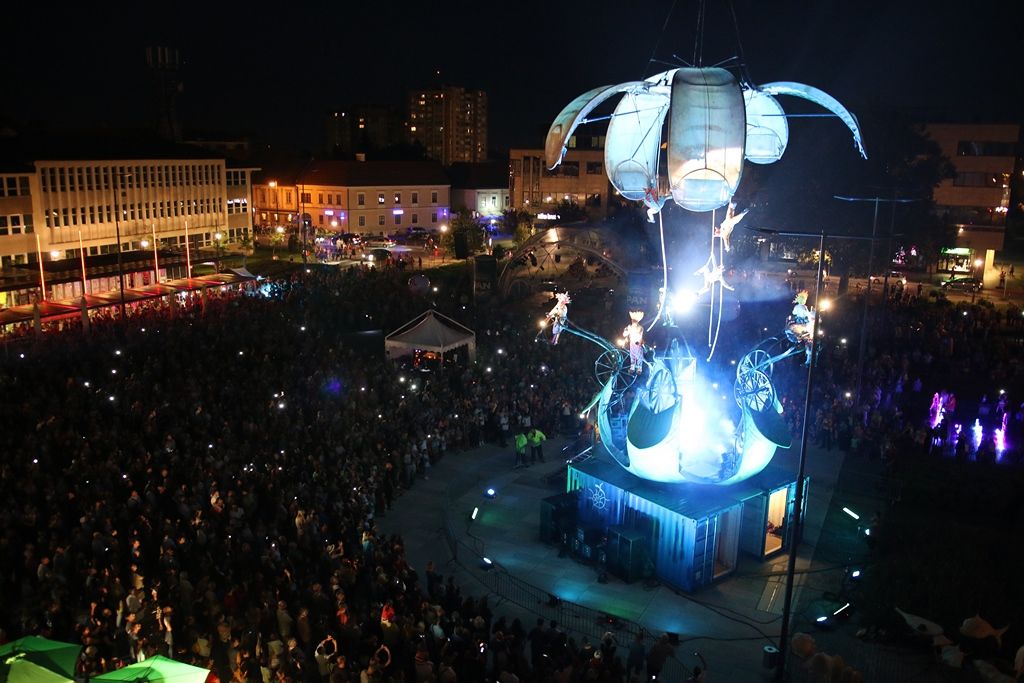 Spektakl koji je večeras izveden u Varaždinu dugo će ostati u kolektivnom pamćenju našeg grada. Performans Mú francuske trupe Transe Express zadivio je brojne špancirere koji su se, slučajno ili namjerno, našli na Kapucinskom trgu nešto prije devet sati.