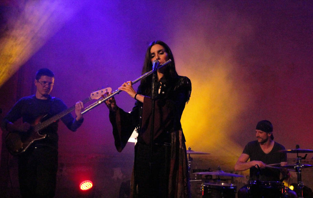 Rene Coner na drugoj gitari, Aleksandar Vešić na basu i Emil Kranjčić na bubnjevima zaslužni su za čvrstu i uigranu svirku, a ispred njih scenom je dominirala pjevačica, ‘povremena’ flautistica, istinski ‘frontwoman’ Melanija Gradečak.