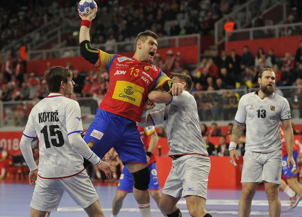 Španjolska obrana nije dopuštala Česima da pošalju loptu na liniju sedam metara, a u prilog im nisu išle ni brojne pogreške i poklonjene lopte. Česi su bili široke ruke. Razlika se polako povećavala i prvih 30 minuta završilo je rezultatom 16:9.