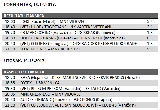 Veliki otpor pružili su veterani Varteksa branitelju naslova Hudek Trgotransu, na kraju svega 2:1 za Čuljaka, Krasniqija, Stolnika i društvo. Slično je bilo i u drugom veteranskom ogledu, lepoglavski Cojones je na poluvremenu vodio 1:0 protiv OPG Radiček Petgrad Nikotradea, na kraju su Koprivničani ipak preokrenuli za očekivanu pobjedu (3:1).