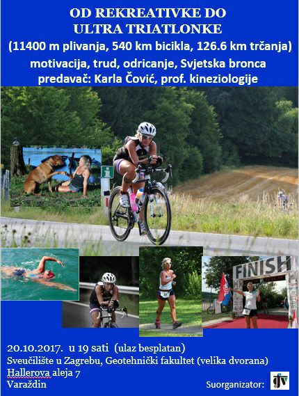 Varaždinska ultra triatlonka Karla Čović će u petak, 20. listopada, na Geotehničkom fakultetu u Varaždinu održati predavanje ‘Od rekreativke do ultra triatlonke’, s početkom u 19 sati.