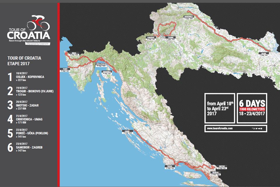 I ove godine Tour of Croatia započinje u Osijeku, u utorak, 18. travnja, a cilj prvog dana bit će Koprivnica.