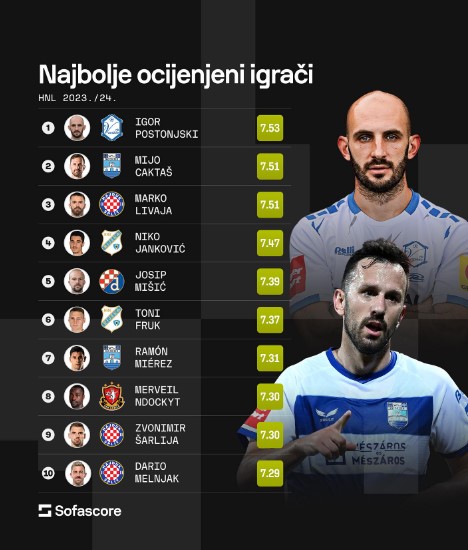 vrhu najbolje ocijenjenih igrača u HNL-u po SofaScoreu.