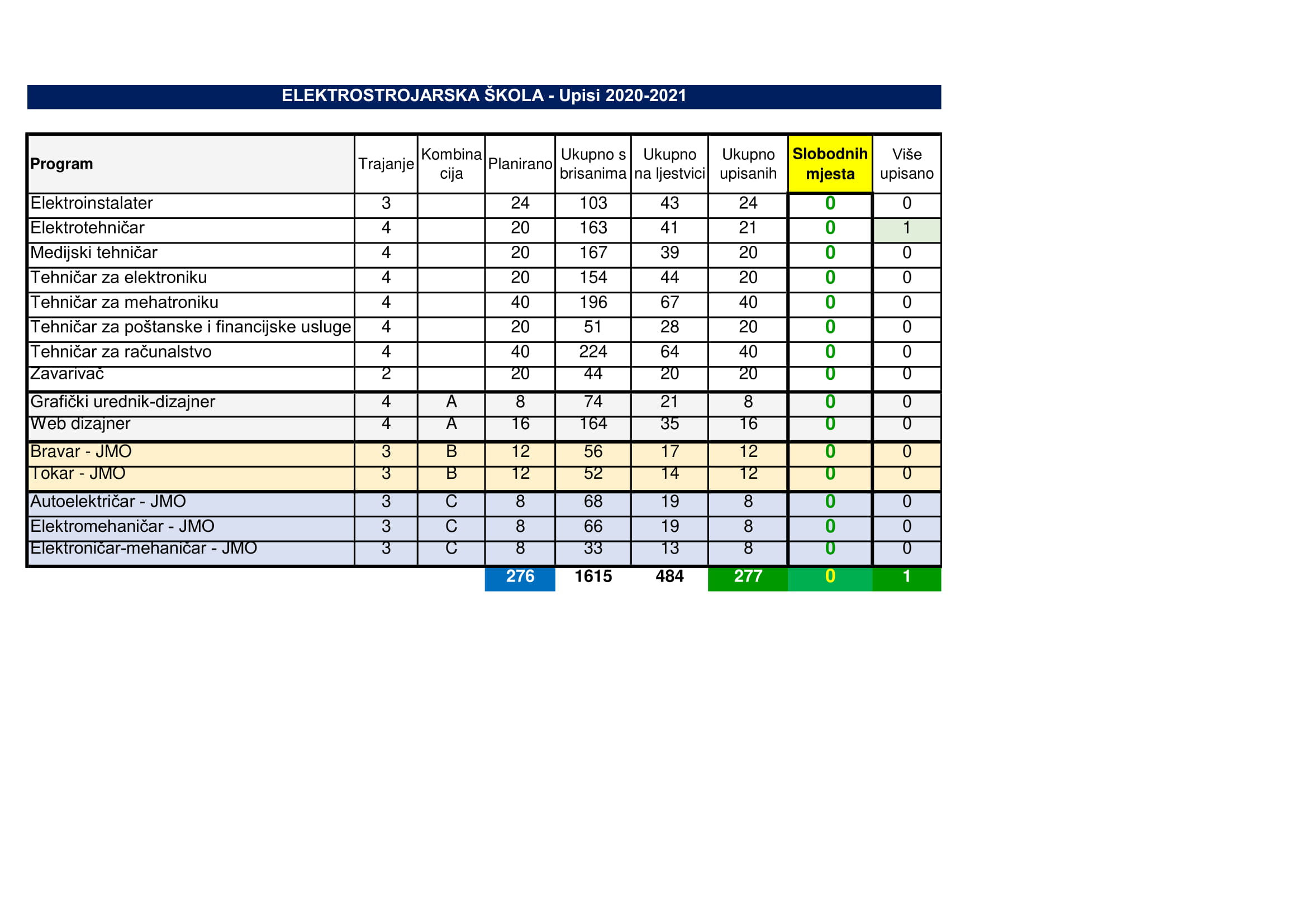 – Od ukupno planiranih 276 učenika upisujemo 277 tj.