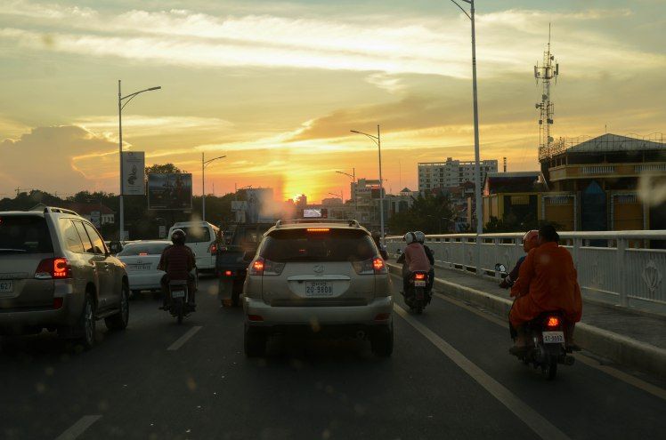 Veliko, narančasto, zalazeće sunce prosulo je svoje zrake i obojilo nebo Phnom Penha. U zadnjim trzajima bijeloga dana ulazimo u glavni grad Kambodže gdje nas vozač, kako se ne bi upleo u mrežu prometnog kaosa, ostavlja na glavnoj cesti koja zaobilazi centar grada. Pružamo mu ruku rastanka, te laganog koraka nastavljamo prema centru.