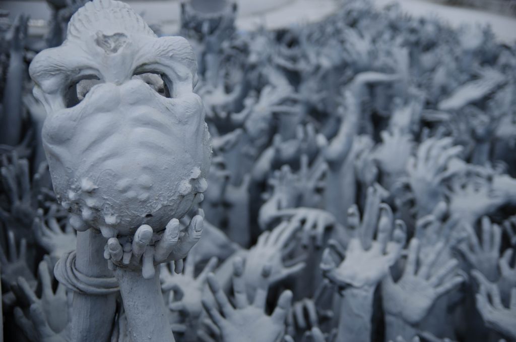 Monstrumske glave, vražje ruke, novorođenčad, muška spolovila, fetusi, sjekire za rezanje glave i udova, glave bez očiju, kralježnice, strah i trepet… Sve je to arhitekt, gospodin Chalermchai, izgradio ispred glavnog ulaza što su Tajlanđani odmah proglasili remek-djelom.