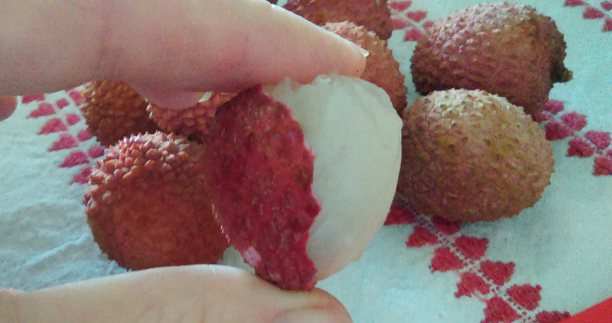 Liči se jede sirov, a prije konzumacije mora se skinuti hrapava kora. Kao što se vidi na fotografiji kora je tanka i vrlo lako se skida.