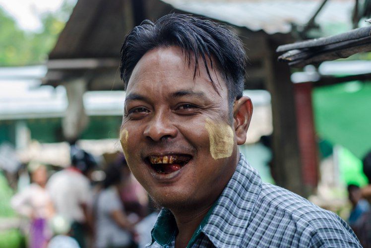 Svaka burmanska glava kuće (govorim o muškoj populaciji) uživa u žvakanju biljke betel. Skoro svaka. Zapravo, žvaču pripravak koji je pomiješan s istoimenom biljkom te sa sjemenkama areke. Ponekad se taj pripravak miješa i sa duhanom. Kao posljedica žvakanja istog raspadanje je usne šupljine, nedostatak zubi te hračkanje ‘krvave’ sline koja se nerijetko viđa kako leti zrakom tražeći čvrsto tlo gdje da udari i ostaviti crveni trag. Naravno, to nije prava krv nego crvena slina koja žvakanjem tog sastojka razvija crvenu boju. Čak im niti jedni Indijci nisu do koljena koji se stvarno trude da zauzmu 1. mjesto na ljestvici hračkanja. Evo još jedne moje ljestvice. Priča se kako su takvi pripravci, kao i sam duhan, stimulans koji smiruju um i čine čovjeka opuštenijim. Neke čak i sretnima. Kada iz pozadine promatram sve te žvakaće, primjećujem uvijek istu radnju. Svi nekontrolirano udaraju nogom u pod, nekada i s obje, nikako ne shvaćajući da ih žvakanje istog čini još više nervoznim.
