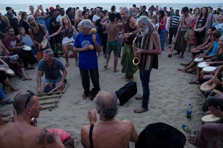 Najzanimljivija i najbolji dio dana je tkz. “Sunset” ili zalazak sunca. Nešto prije 6 sati navečer, napuštaju se svi trenutni poslovi i trči se na plažu kako bi se stiglo prije zalaska sunca. Odjednom, more ljudi preplavi plažu. Pjesma, ples, žongliranje, yoga, meditacija…sve su to radnje kojim se otpraćuje ovaj dan. Ali ipak, najvažniji događaj te centar svakog sunseta je “Drum circle”. Ljudi sa svojim Drum instrumentima, većinom su to Djembe, samoinicijativno se okupe te sviraje može početi. Kako noć sve više zamjenjuje dan, tako je lupanje po Djembama sve glasnije. Taj pravi mali party traje još sat vremena nakon što padne mrak.
