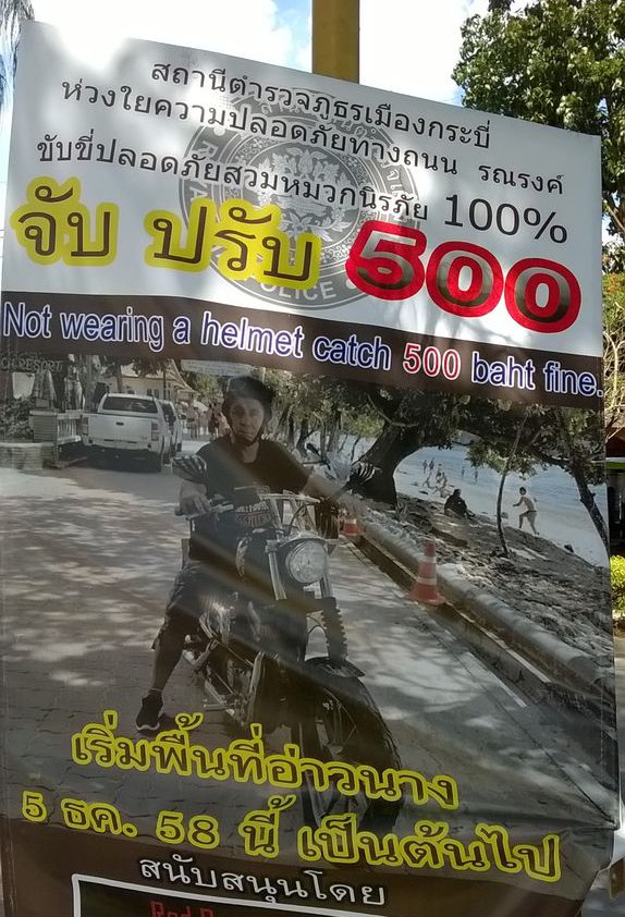Čak ni u Ao Nangu, iako su postavljena brojna upozorenja i cijena kazne od 100 kuna, ali kaciga je opet većini strani pojam. Nakon dva dana nošenja kacige nalik onoj od UNPROFOR-a, shvaćam zašto ih nitko ne koristi – osim što su neupotrebljive, ružne su do bola.