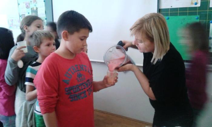 U posljednje vrijeme u 3. OŠ Varaždin na izbornoj nastavi ‘Mali Zeleni’ radim klincima smoothije i svi su oduševljeni. Naravno da smo radili i zdravi sladoled od samo dva sastojka, banana i šumsko voće i klinci oduševljeni, fino im je! Pili su svježe iscijeđeni sok od cikle i jabuke i to im je bio najbolji sok ikada! Stvarno, ne zezam. A zašto? Zato što je bilo na okupu mnogo djece i pozitivna energija se uskovitlala i nadodala energiju uzbuđenja i psihologija mase je proradila na najbolji mogući način, pa me mame zovu za recepte. I sada kada Vi ovo čitate mi u školi radimo zdravu Nutellu od lješnjaka i kakaa koju ćemo namazati na bananu!