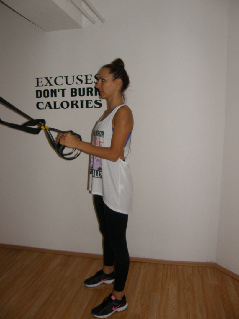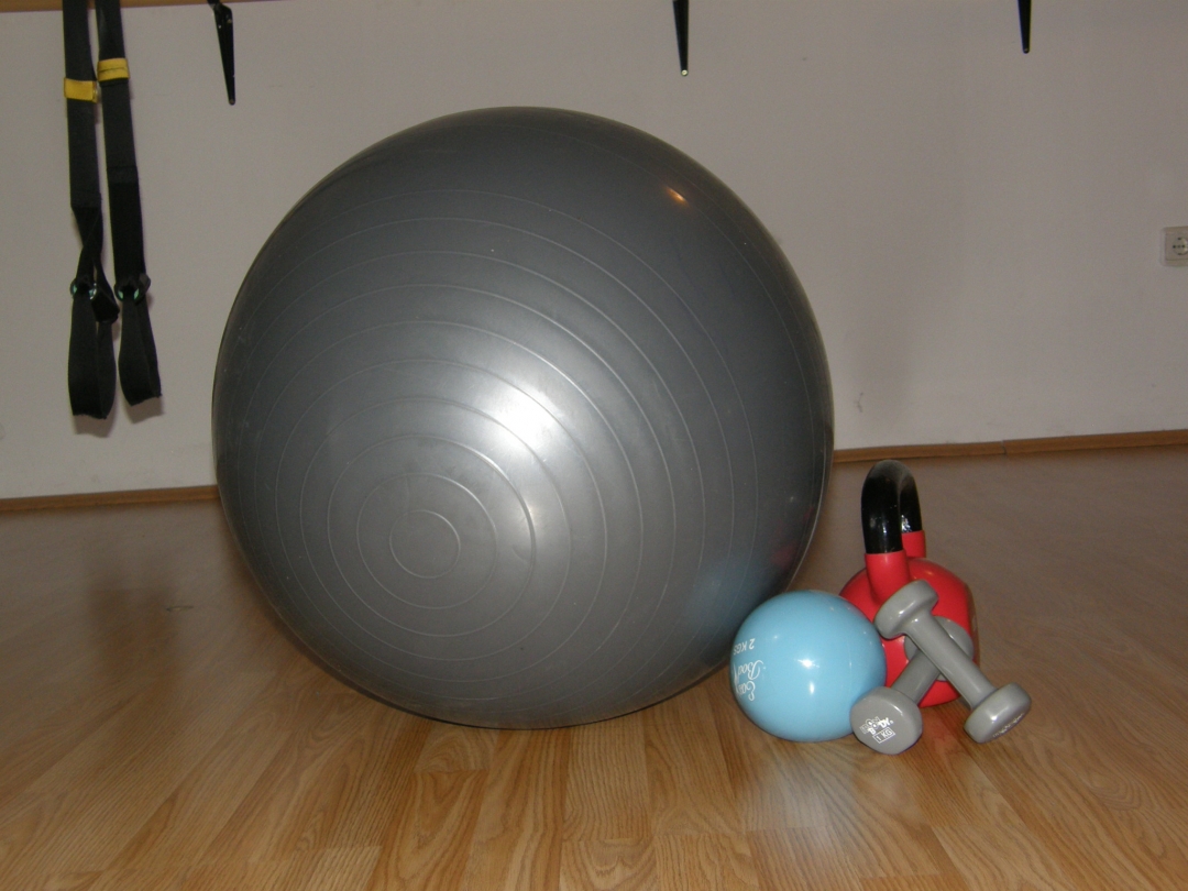 Za trening sam kao vanjsko opterećenje koristila rekvizite iz Fitness Studio FitLife: Suspenzijsku traku, pilates loptu, girju od 12kg, bučice od 1kg i malu loptu s pijeskom od 2kg.