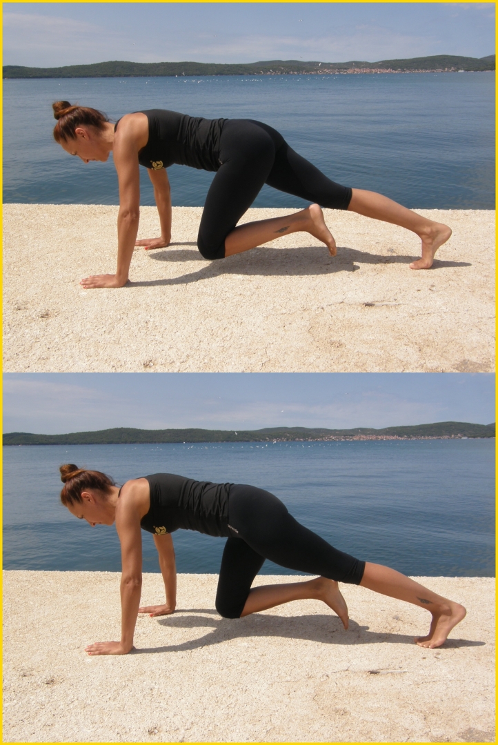 Kratko podizanje trupa (fleksija trupa) na donje bridove lopatica.